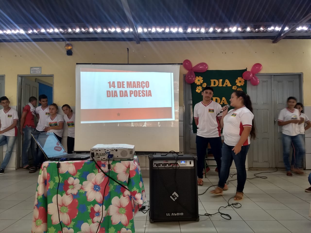 Os docentes trabalharam as poesias de acordo com as temáticas propostas para cada turno, assim sendo, o turno da manhã discorria sobre o tema “Os valores da minha terra” e o turno da tarde tratava do tema “ Vivendo numa era digital”, sendo ambas as temáticas importantes e direcionadas a temas do cotidiano dos discentes.