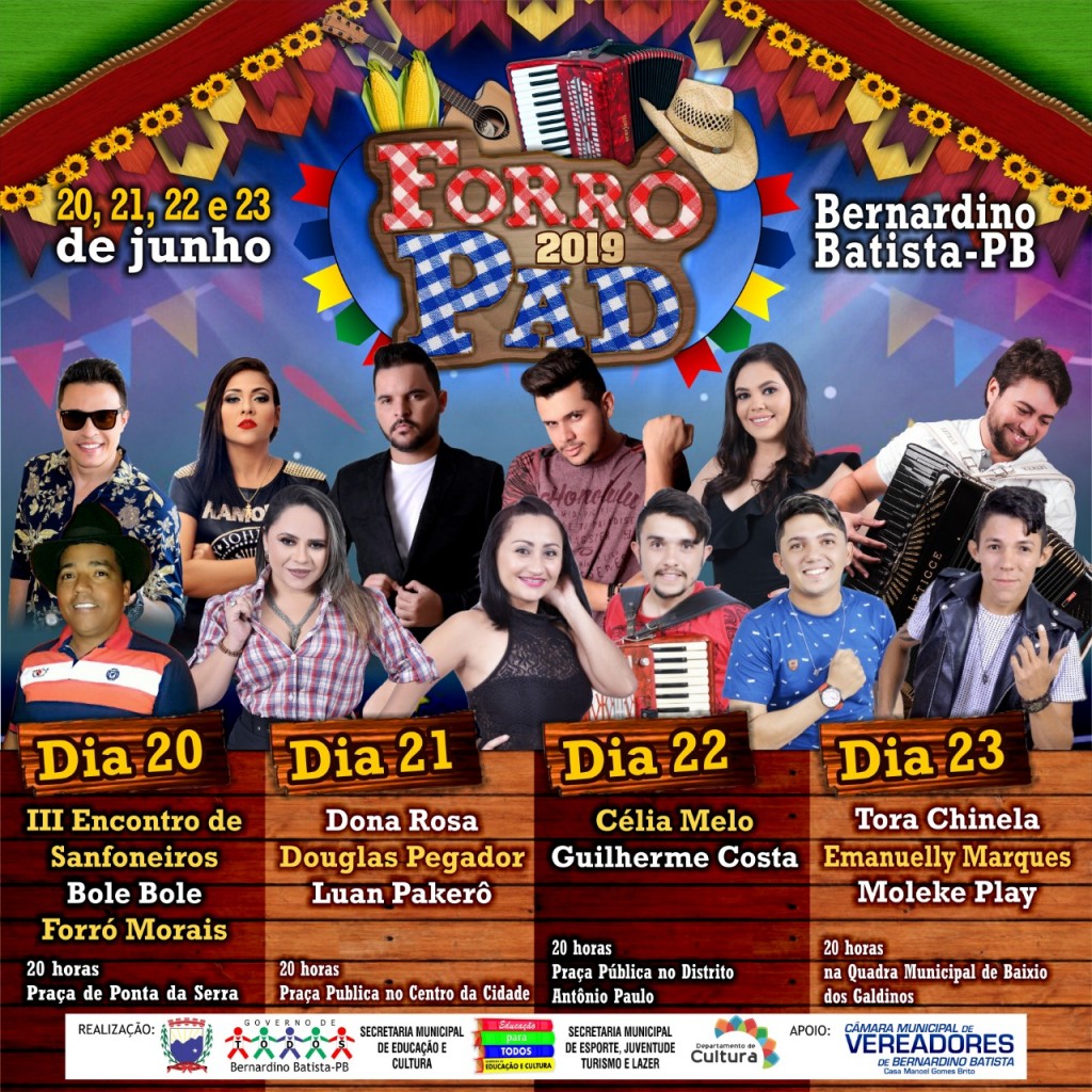 O prefeito do município de Bernardino Batista, anunciou na manhã desta Segunda-feira (20), durante coletiva de imprensa no Auditório da Secretaria de Educação, a programação oficial do ForróPad 2019.