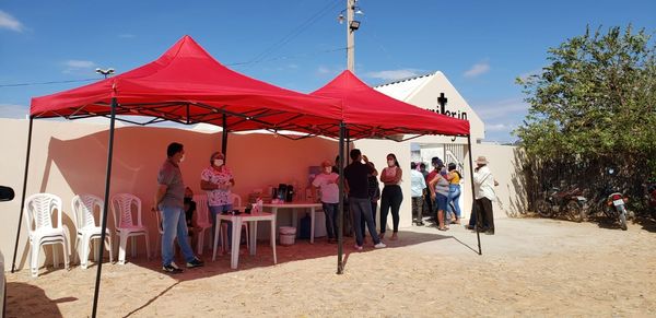 Com o apoio da secretaria de saúde e demais secretarias municipais, que montaram tendas, com cafézinho, água e ofertando também através de uma profissional da saúde aferição da pressão arterial, temperatura e ainda na distribuição de máscara e higienização das mãos com álcool 70%.
