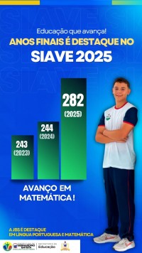 A educação do município segue avançando de forma consistente e reafirmando seu compromisso com a aprendizagem dos estudantes. Os resultados mais recentes do Sistema de Avaliação da Educação (SIAVE 2025) comprovam esse crescimento, especialmente nos anos finais do Ensino Fundamental.