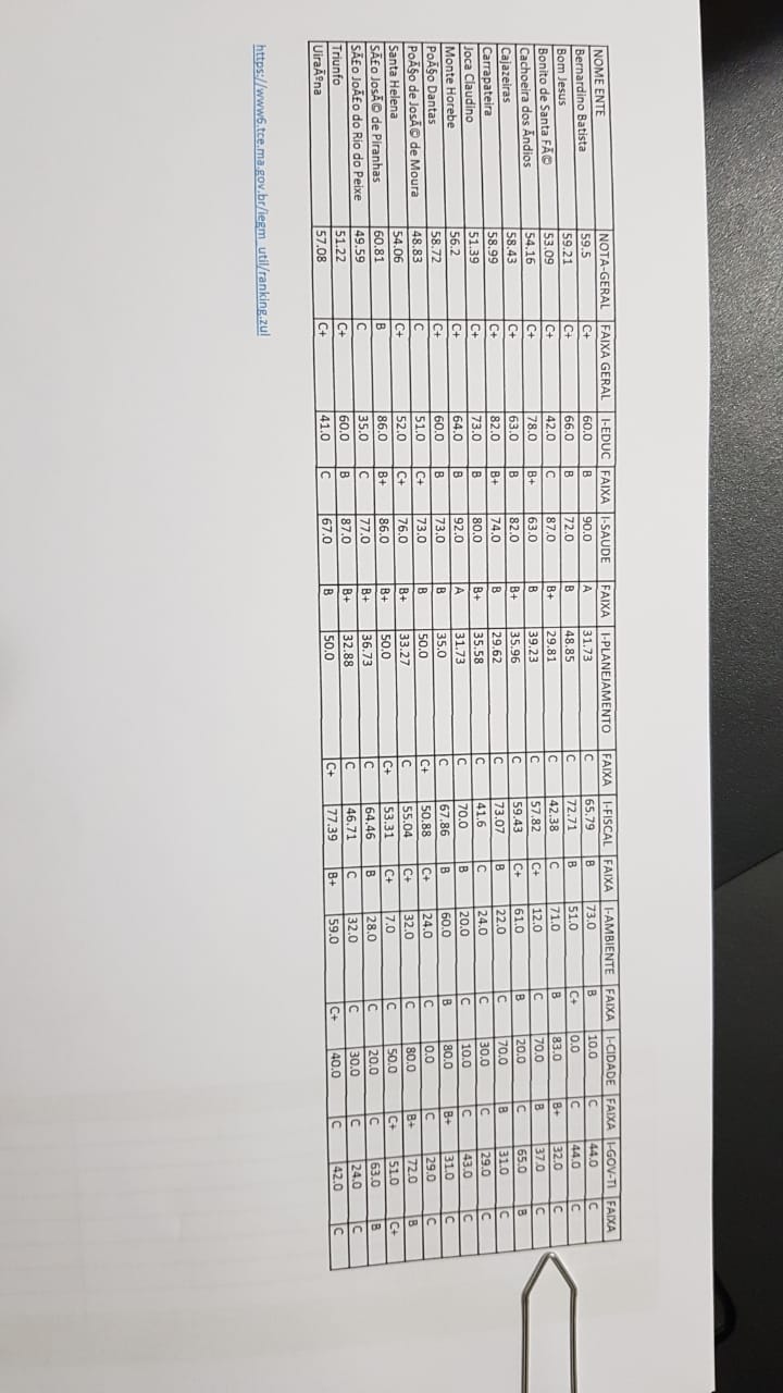 gestão, o resultado da avaliação feita pelo TCE PB, sobre IEGM Índice de