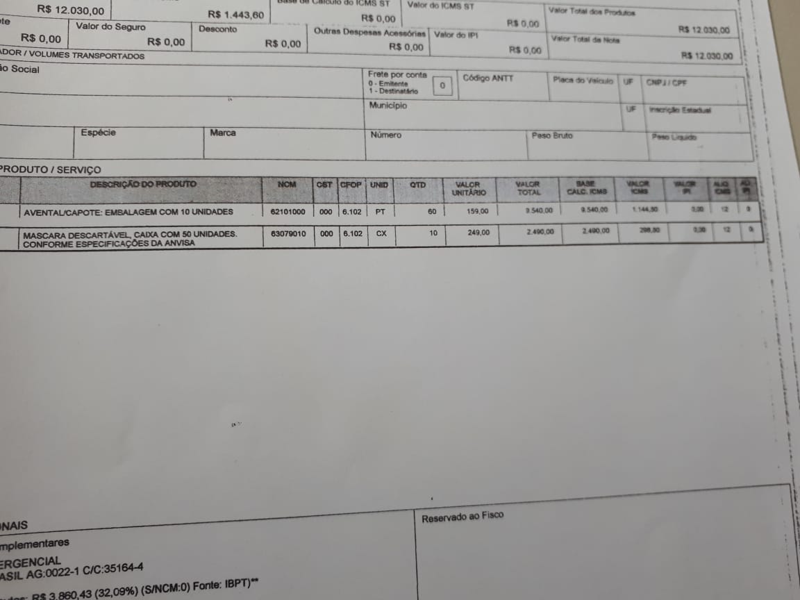 Foram adquiridos álcool em gel, sapatilhas, capotes, óculos,